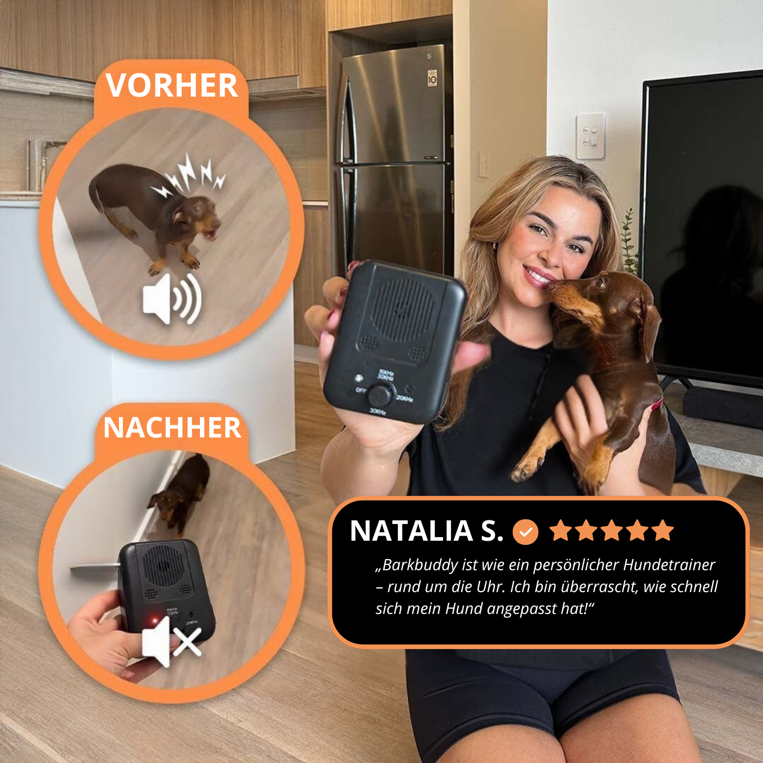 Dank Ultraschall-Technologie, entwickelt mit Profis, sendet Barkbuddy einen harmlosen Ton aus, der lästiges Bellen stoppt.