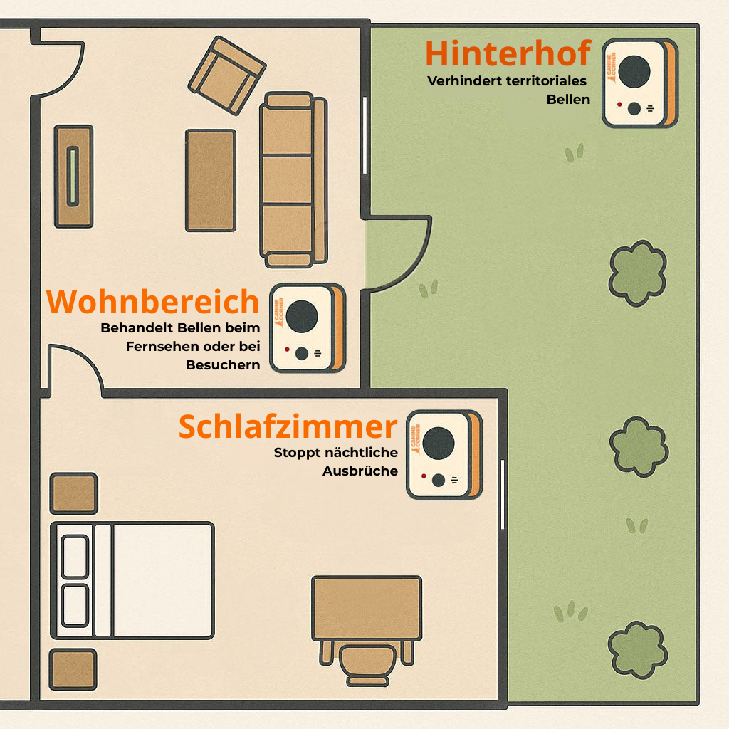 Barkbuddy ist ein vielseitiges Gerät, das sich für Häuser, Wohnungen, Gärten und Hundezwinger eignet.