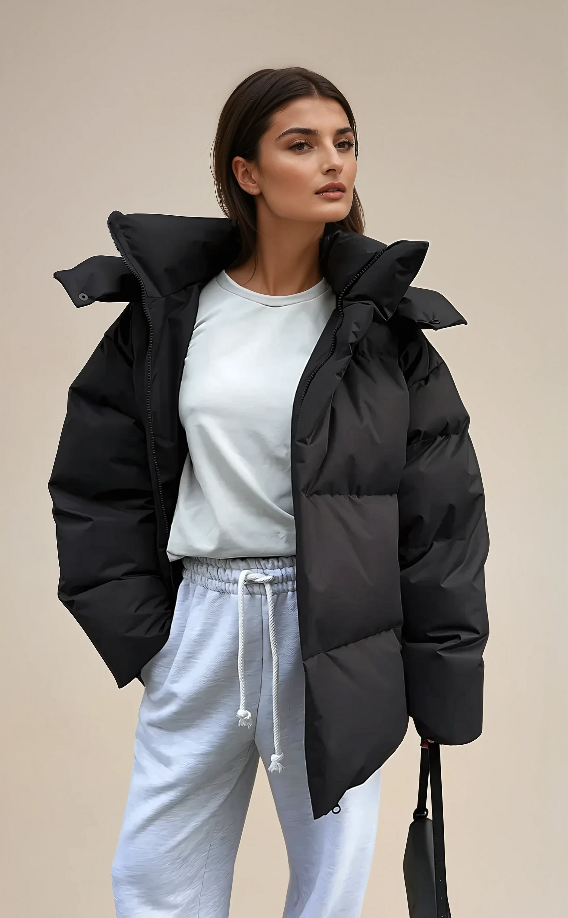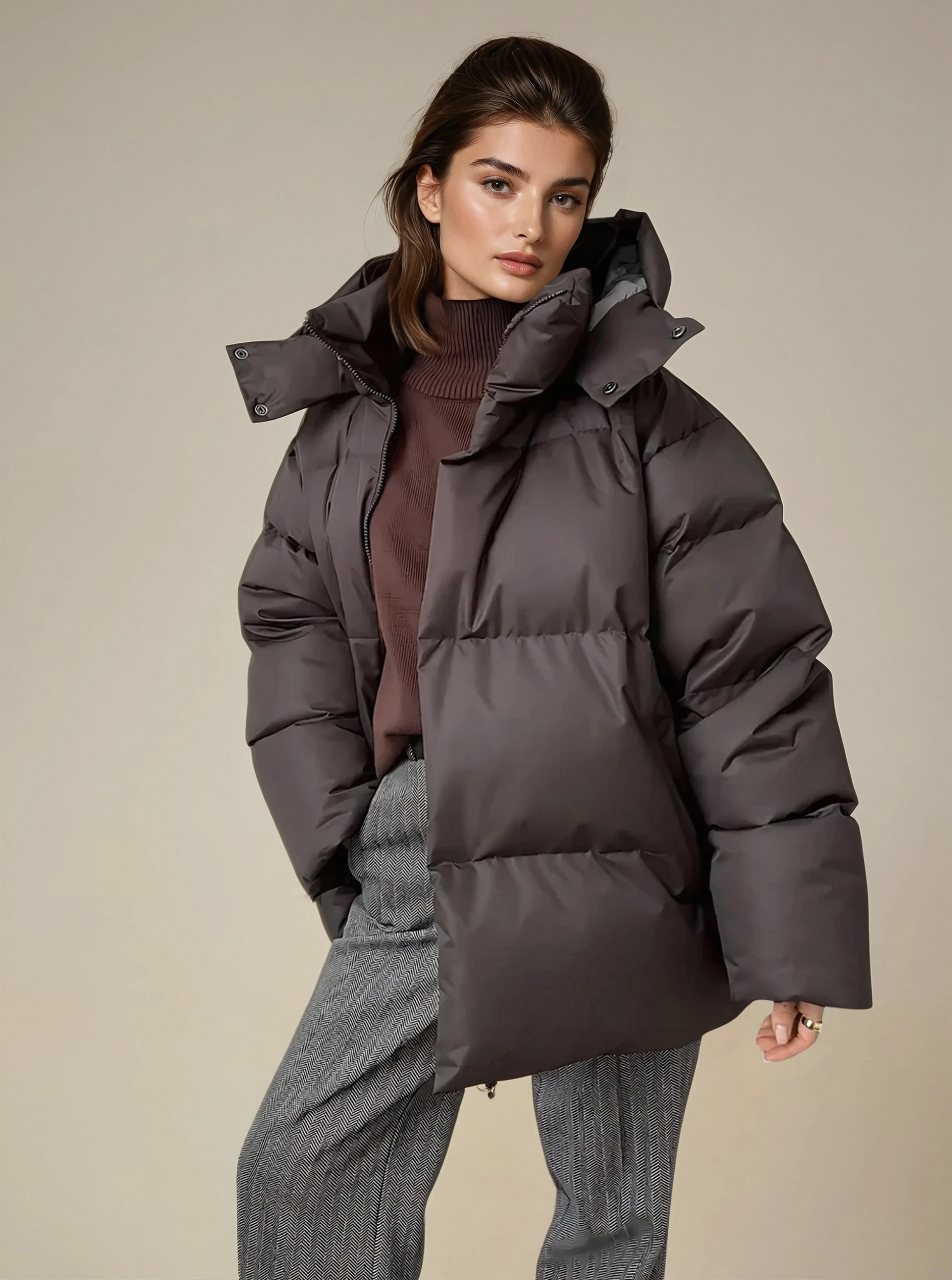 Halten Sie sich warm und stylisch mit unserem Gemütlichen Oversize-Daunenmantel! Dieser Mantel kombiniert Komfort und Eleganz, ideal für kalte Tage.