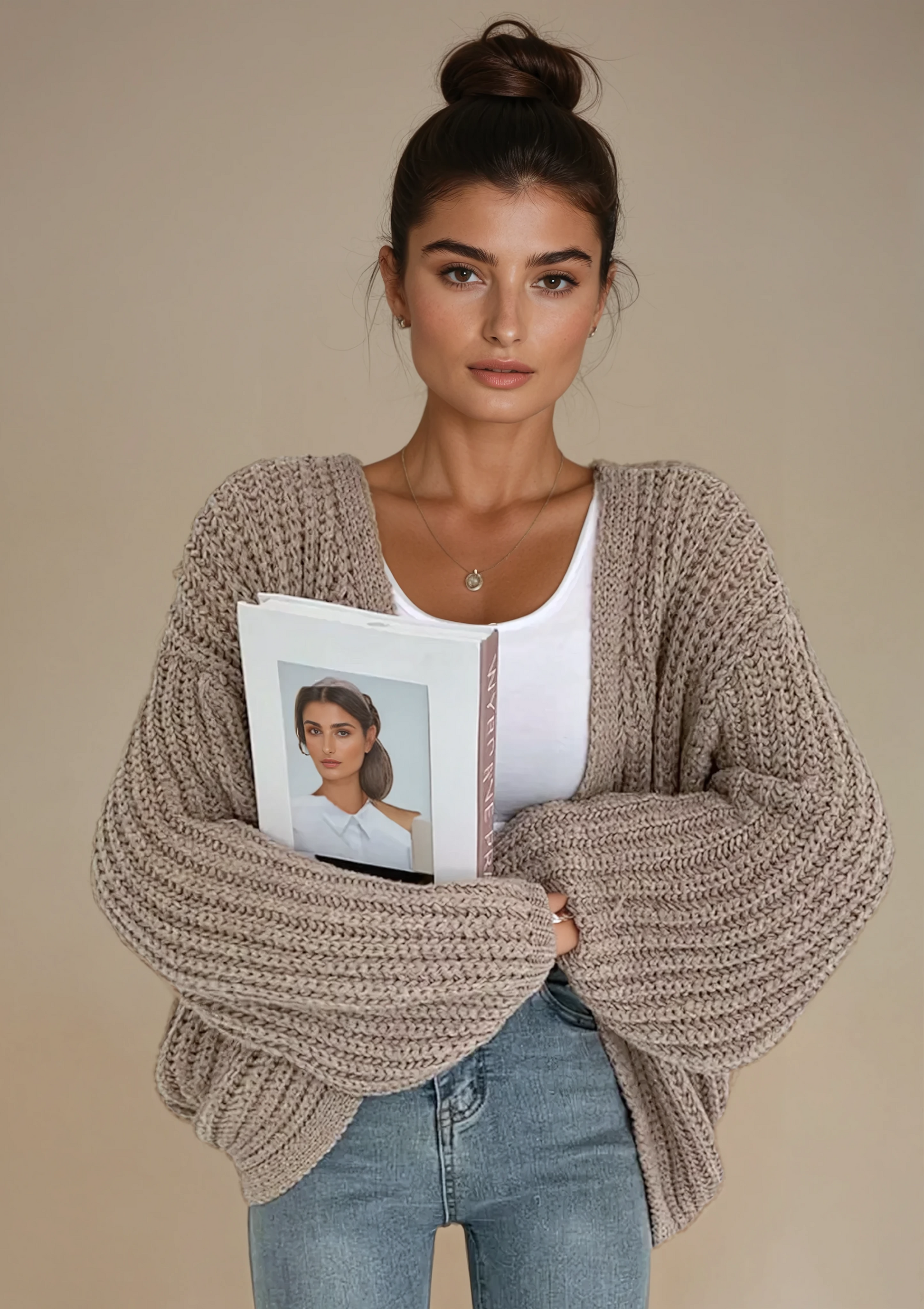 Kombinieren Sie Stil und Komfort mit unserer Strickjacke mit Laternenärmeln. Dieses vielseitige Kleidungsstück ist perfekt für moderne Frauen, die zeitlose Eleganz schätzen. Die Laternenärmel verleihen einen Hauch von Raffinesse, während das weiche Strickmaterial für optimale Wärme und Bequemlichkeit sorgt. Ideal kombinierbar mit Jeans, Röcken oder Kleidern – ein unverzichtbares Highlight für Ihre Garderobe!